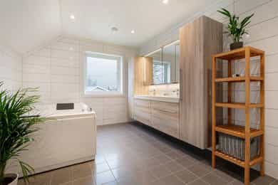 Stor, innholdsrik enebolig over 2 etasjer fra 2016, med trippel garasje og uthus. Stor terrasse med gode solforhold.