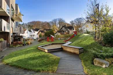 Eiendommen har en attraktiv og sentral beliggenhet i populære Bjergsted. Her bor du i rolige omgivelser med kort gangavstand til alt byen har å by på. I nærområdet finner du dagligvarebutikker, skoler og barnehager, samt flotte grøntområder som Bjergstedparken, perfekt for turer og rekreasjon. Fra boligen kan du spasere til Stavanger sentrum via sjarmerende Gamle Stavanger og ned mot konserthuset. I sentrum finner du et bredt utvalg av butikker, restauranter, kafeer og kulturtilbud. Nærmeste dagligvarebutikk er Rema 1000, kun ca. 5 minutters gange unna. Området er også svært gunstig for studenter og ansatte ved BI Stavanger og Stavanger Offshore Tekniske skole, som begge ligger kun få minutters gange fra boligen. Det gode kollektivtilbudet i området gir hyppige bussavganger mot sentrum og øvrige bydeler.