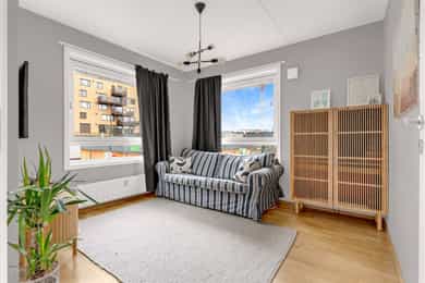 Velkommen til Adolph Tidemands gate 23, presentert av Kenneth Andreassen i Nordvik Lillestrøm! Leiligheten er lys og innbydende med store vindusflater og innglasset balkong. Med en beliggenhet midt i Lillestrøm sentrum har man umiddelbar nærhet til alle byens fasiliteter! Leiligheten er i utgangspunktet en 2-roms, men er i senere tid omgjort til en 3-roms. Kjøkkenet har profilerte fronter, benkeplate i laminat og plass til kjøleskap og komfyr. Videre er det god plass til spisebord. Det er et pent, flislagt bad med gulvvarme og opplegg for vaskemaskin, samt et stort soverom, og en innvendig bod. Det medfølger også en bod. Kort fortalt: - Svært sentral selveierleilighet - Fjernvarme a-konto inkludert i felleskostnader - Innglasset balkong - Heis - Mulighet for leie av garasjeplass