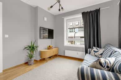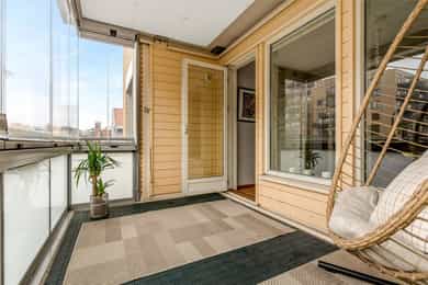 Lys og innbydende 3-roms hjørneleilighet med svært sentral beliggenhet! Innglasset balkong og heis. Fjernvarme a-konto
