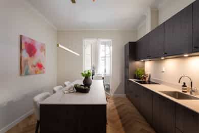 Nyoppført 3-roms selveier med høy standard i klassisk utførelse, beliggenhet i en ærverdig bygård. Unik mulighet!