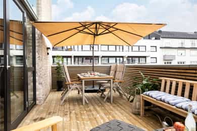 Moderne 3-roms med gjennomgående god standard, vannbåren varme, stor terrasse, garasje og heis sentralt på Fagerborg