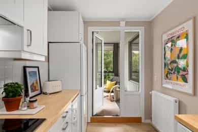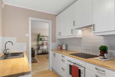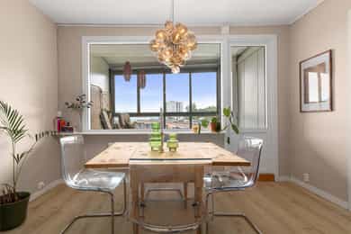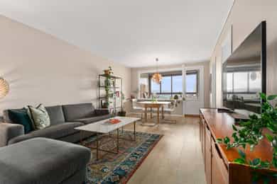 Velkommen til Lauritz Hervigs vei 82! Dette er en lys og innbydende 3-roms leilighet i 5. etasje med heis i populære "Stjerneblokka". Høydepunkter: - Heis - 2 soverom - God planløsning - Oppgraderte overflater i flere rom - 2 innglassede balkonger på 3m2 og 9m2 - Flott utsikt og gode solforhold - Praktisk med innvendig bod i leiligheten - Leiligheten disponerer også bod og matbod i kjeller - Muligheter for parkeringsplass tildelt etter venteliste - Oppvarming og varmtvann inkludert i felleskostnader - Veletablert boområde med umiddelbar nærhet til bussholdeplass - Praktisk med gangavstand til dagligvarebutikker og sentrum - Enkel tilknytning til marka med flotte turmuligheter hele året