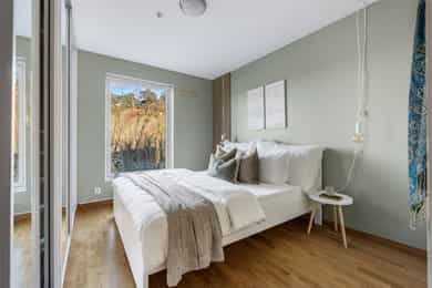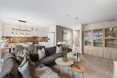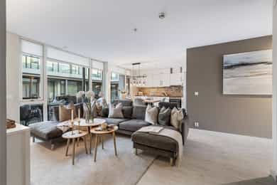 Tiltalende og innholdsrik leilighet med 3 soverom, 2 bad og lun uteplass. Garasje med heisadkomst!