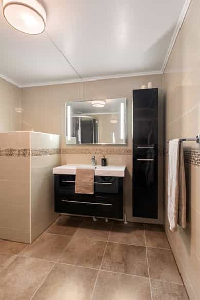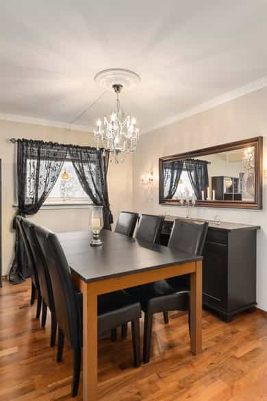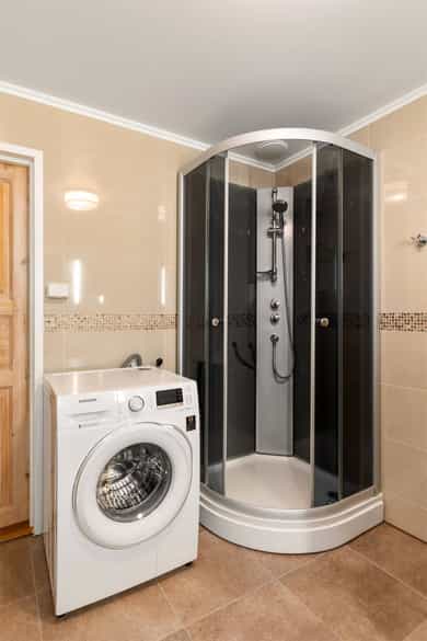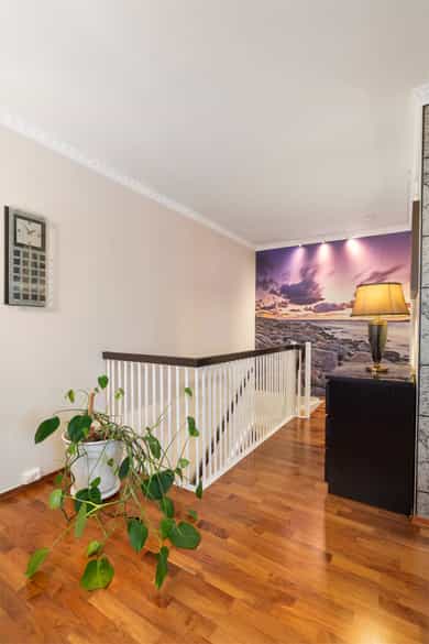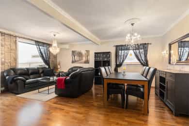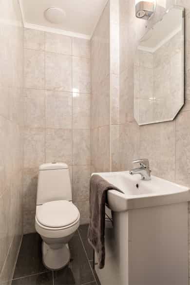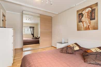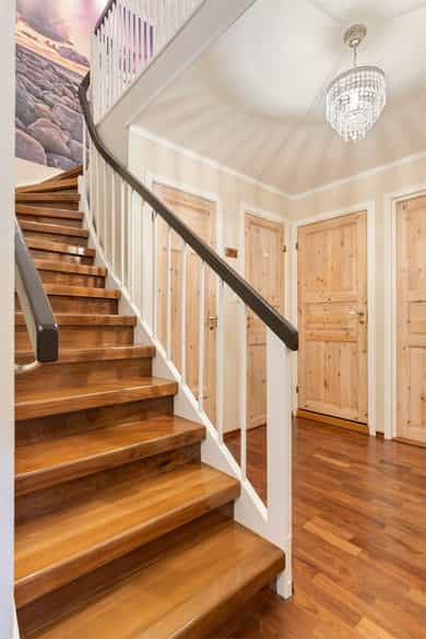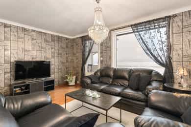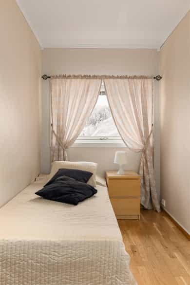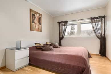 4. Etasje: Entré/gang: Praktisk gang med plass for å henge fra seg yttertøy. Videre adkomst til romslig gang med ytterligere oppbevaringsmuligheter. I tillegg er det 2 stk praktiske boder i etasjen, som gir god med oppbevaringsplass. Soverom: Boligen har tre gode soverom. Hovedsoverommet gir god plass for dobbeltseng med tilhørende nattbord. Det er satt inn både garderobe og kommode for god plass til oppbevaring. Soverom 2 og 3 passer perfekt som barnerom eller gjesterom, og har skap for oppbevaringsmuligheter. Bad: Pent flislagt bad fra rundt år 2013 med varmekabler i gulv. Badet er utstyrt med servant med underskap, veggskap, speil med lys, dusjkabinett og toalett. Det er opplegg for vaskemaskin og tørketrommel på badet. Toalettrom: Praktisk toalettrom med flislagte overflater. Rommet er utstyrt med toalett og servant. 5. Etasje: Stue: Romslig stue med gode møbleringsmuligheter. Stuen gir god plass for sofagruppe med tilhørende tv-møblement. Videre er det naturlig plass for spisegruppe med tilhørende møblement. Det er montert varmepumpe i stuen som bidrar til Kjøkken: Kjøkken fra Ikea med profilerte fronter, flislagt over kjøkkenbenk og benkeplate av stein. Kjøkkenet er utstyrt med hvitevarer som komfyr, kjøl/fryseskap og oppvaskmaskin.