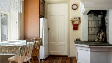 - På kjøkkenet ble det installert en ny grue/peis og i stuen en stor kleberstein ovn