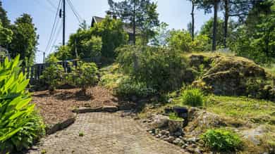 Sentrumsnær og innholdsrik villa – romslig tomt - garasje - hage - nær sjøen - hyggelig tun