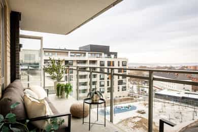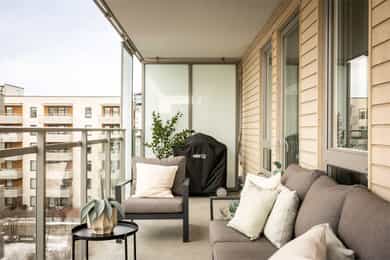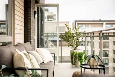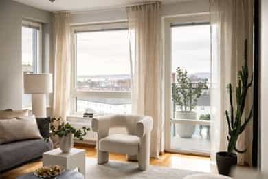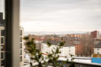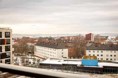Lys og tiltalende 3-roms i 5. etg med 16 kvm vestvendt balkong | Soverom vendt mot indre gårdsrom | Garasjeopsjon*