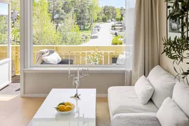 På Gressvik, 3 km vest for Fredrikstad sentrum, venter Hurrødåsen 2. Leiligheten ligger på en liten høyde mellom barneskolen, idrettshallen og kirken. Gressvik er som en komplett småby med alt du trenger i hverdagen. Herfra er det kort avstand til ferge, badeplasser og turstier. Borettslagsleiligheten ligger i en gul blokk fra 1972. Nabolaget er svært hyggelig og stille. Fra sin solrike balkong i 4. etasje har du god utsikt over tretoppene både sørover og vestover. I kjelleren er det bod og parkering foregår på asfalterte plasser. Blokken er godt vedlikeholdt; alle vinduer ble byttet i 2012-14, og leiligheten selv har gjennomgått en stor modernisering med bad fra 2019 og kjøkken fra 2017. Alle flater har blitt pusset opp, og gulvene har lys parkett.