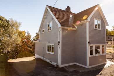 Det foreligger ikke ferdigattest, men ekspedisjonsdokument datert fra 1922. Ekspedisjonsdokument er forgjengeren til ferdigattest. Ekspedisjonsdokumentet er ferdig attestert, og dokumenterer at bygget er registrert lovlig oppført. At ekspedisjonsdokument eksisterer, gir ingen garanti for at bygget er oppført i henhold til tillatelsen og gjeldende regelverk eller at det senere er utført arbeid på bygget som ikke er byggemeldt eller godkjent. Videre foreligger det dokumentasjon for bygningskontroll fra 1966 i forbindelse med ombygging innredning av bad i 2. etasje m.m., men det foreligger ikke ferdigattest for arbeidet. Det foreligger ferdigattest for rehabilitering av pipe fra 2019. Det er avvik mellom byggemeldte tegninger og faktiske forhold: På boligen er det oppført et karnapp mot øst. Karnappet er ikke byggemeldt kommunen. Videre er veranda i 2. etasje innlemmet i boligen og tatt i bruk som soverom. Dette er ikke omsøkt kommunen. Hele kjelleretasjen er byggemeldt som råkjeller. Det kan være avvik fra dagens rombruk/rombenevnelser sammenlignet med det som er byggemeldt/godkjent.
