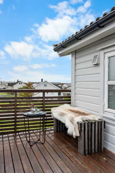 Eiendommen har terrasse mot sør og hage mot vest og nord - Dette sikrer en gode solforhold.