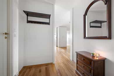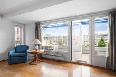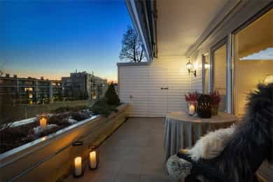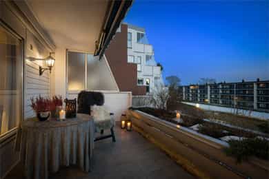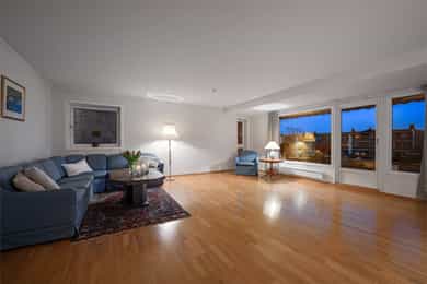 Lys 5-roms hjørneleilighet m/god intern beliggenhet. Stor, solrik terrasse m/flott utsyn. Peis. Garasjeplass. Sentralt!