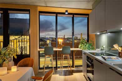 Unik og rålekker 3-roms i arkitekttegnet bygg fra 2021 - Fransk balkong og fantastisk utsikt -Felles, solrik takterrasse