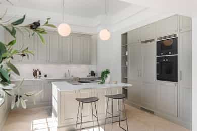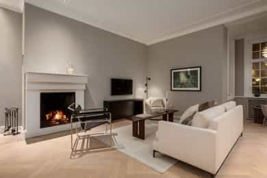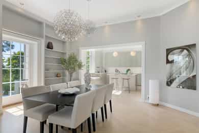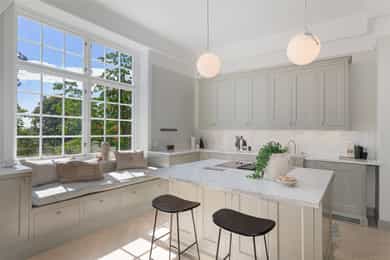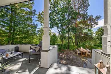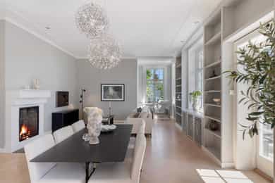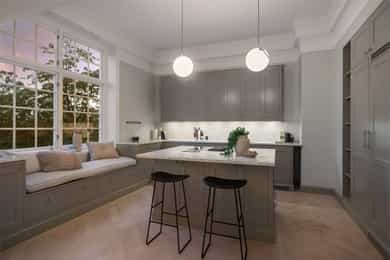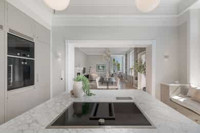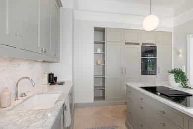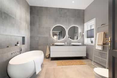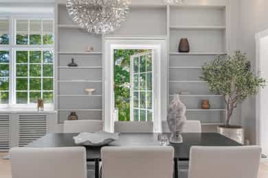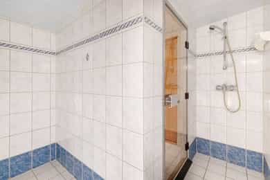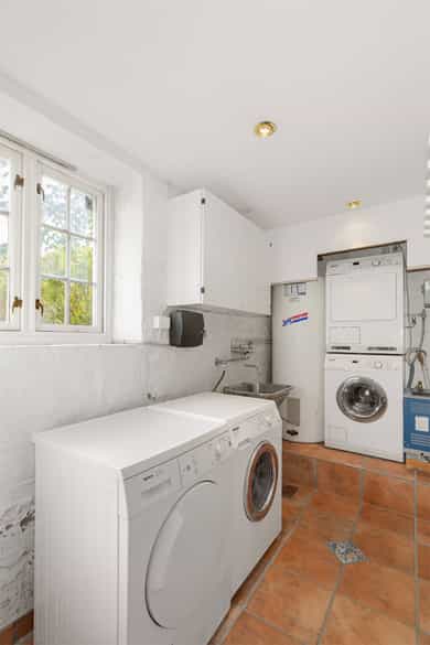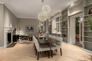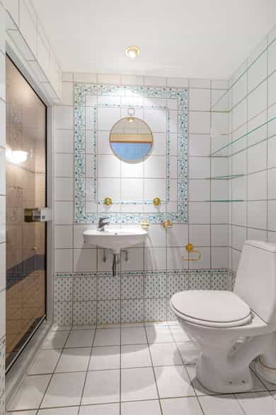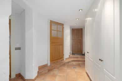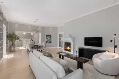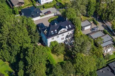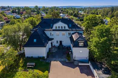 Kjøkken: Tidsriktig malt profilert innredning fra Lidhults, soft close, takoppforing, lyslist, innfelt downlights under overskap, antatt marmor benkeplate med underlimt stålkum og nedfelt kombi avtrekksvifte/induksjonstopp, integrert komfyr, oppvaskmaskin, micro, kjøleskap, fryseskap. Hvitevarer fra Gaggenau. Det er kjøkkenventilator antatt med avtrekk ut. Bad I, hovedetasje: Lekkert flislagt bad/wc med varmekabler, avtrekk, speilskap, vindu, downlights, servant med innredning, dusj hjørne med glassvegg, vegghengt toalett. Veggene har fliser. Taket er malt. Gulvet er flislagt. Rommet har elektriske varmekabler. Fall mot sluk er målt til ca. 30 mm. fra terskel til rennesluk, svakt fall i våtsonen. Det er plastsluk og smøremembran med dokumentert utførelse. Det er elektrisk styrt vifte. Hulltaking er ikke foretatt da det ikke er fysisk mulig pga tilliggende konstruksjoner. Bærevegger, teglsteins vegger. Bad II, hovedetasje: Eksklusivt bad med flislagt gulv, varmekabler, fliser og malte flater på vegger, avtrekk, 2 stk. spei med belysning, downlights, benkeplate med 2 stk. vask samt innredning, badekar, vegghengt toalett. Veggene har fliser og malte plater. Taket er malt. Gulvet er flislagt. Rommet har elektriske varmekabler. Fall mot sluk er målt til ca. 10 mm. Det er antatt plastsluk og ukjent tettesjikt/membran. Det er elektrisk styrt vifte. Hulltaking er ikke foretatt da det ikke er fysisk mulig pga tilliggende konstruksjoner. Bærevegger, teglsteins vegger. Bad, kjeller: Flislagt bad/wc med varmekabler, speil, downlights, servant, dusj hjørne med glassdør, toalett. Hulltaking er foretatt uten å påvise unormale forhold. Hulltaking er foretatt i gang. Vaskerom, kjeller: Vaskerom med flislagt gulv, vindu, avtrekk, belysning, opplegg for vaskemaskin og tørketrommel, stålkum, bereder. Hulltaking er ikke foretatt da det allerede er påvist andre avvik i våtsonen. Innvendige overflater: Gulv: Parkett, betong gulv, fliser. Vegger: Malte flater, pusset teglstein, tapet, fliser. Himling: Malte flater, trepanel. Innvendige trapper: Boligen har malt tretrapp med løper. Innvendige dører: Innvendig har boligen heltre eikedører. Etasjeskille/gulv mot grunn: Etasjeskiller er av trebjelkelag, støpt dekke i kjeller. Rom under terreng: Gulvet er av betong. Veggene har betong/mur. Hulltaking er ikke foretatt. Rommet har en konstruksjon som gjør hulltaking unødvendig. Terrasser: Terrasse med støpt dekke belagt med skifer på ca. 10 kvm. Markterrasse belagt med naturstein på ca. 90 kvm. Utvendige trapper: Støpte trapper og repos belagt med skifer. Trapper i naturstein. Andre utvendige forhold: Gangsti med naturstein. Pipe og ildsted: Boligen har mursteinspipe og åpen peis. Vinduer: Bygningen har trevinduer med koblet glass. Ytterdører: Bygningen har malt balkongdør i tre. Bygningen har malt hovedytterdør. Vannledninger: Innvendige vannledninger er av kobber med plastkappe. Vannledninger II: Innvendige vannledninger er av plast (rør i rør). Det er besiktiget i rørskap. Avløpsrør: Det er avløpsrør av støpejern. Avløpsrør II: Det er avløpsrør av plast. Ventilasjon: Boligen har naturlig ventilasjon. Varmtvannstank: Varmtvannstanken er på ca. 300 liter. Elektrisk anlegg: Sikringsskap med automatsikringer. Branntekniske forhold: Røykvarslere og pulverapparat. Forstøtningsmurer: Forstøtningsmurer er av naturstein. Forstøtningsmurer II: Forstøtningsmurer er antatt av betong belagt ,med skifer på toppen. Følgende punkter i tilstandsrapporten er gitt tilstandsgrad 3: - Bad II, hovedetasje. Sluk er ikke tilgjengelig for inspeksjon. - Bad, kjeller. Våtrommet må oppgraderes for å tåle normal bruk etter dagens krav. - Vaskerom. Våtrommet må oppgraderes for å tåle normal bruk etter dagens krav. Følgende punkter i tilstandsrapporten er gitt tilstandsgrad 2: - Bad I, hovedetasje. Det er påvist at noen fliser har bom (hulrom under). Det er påvist sprekker i fliser. Det er ikke påvist tilfredsstillende løsning for å synliggjøre lekkasje fra innebygget sisterne. - Bad II, hovedetasje. Det er mulighet for at det kan forekomme vannlekkasje på våtrommet hvor vann ikke vil gå til sluk. Det er påvist at noen fliser har bom (hulrom under). et er ikke påvist tilfredsstillende løsning for å synliggjøre lekkasje fra innebygget sisterne. - Innvendige overflater. Skjevheter og ujevnheter samt slitasje på parkett, sår og skader i betong dekke, bom/hullyd under fliser, saltutslag på vegger og gulv, knirk mm. - Innvendige trapper. Det er betydelig knirk i trapp. - Innvendige dører. Det er påvist avvik som tilsier at det bør foretas tiltak på enkelte dører. - Etasjeskille. Etasjeskiller er av trebjelkelag, støpt dekke i kjeller. - Rom under terreng. Det er påvist indikasjoner på noe fuktgjennomtrenging i kjellergulv. Det er påvist indikasjoner på noe fuktgjennomtrenging inn i kjellermur. - Terrasser. Rekkverket er for lavt i forhold til dagens krav til rekkverkshøyder. Noe bom/hullyd under skifer. Noe ujevnheter, telehiv mm. - Vinduer. Karmene i vinduer er slitte og det er sprekker i trevirket. - Ytterdører. Det er påvist utetthet/åpning mellom dørblad og dørkarm. Dvs. at kald trekk kan oppstå. Karmene i dører er værslitte utvendig og det er sprekker i trevirket. - Utvendige trapper. Noe bom/hullyd under skifer, noe løs fug mm. Noe skjevheter mm. - Andre utvendige forhold. Noe skjevheter mm - Vannledninger. Mer enn halvparten av forventet brukstid er passert på innvendige vannledninger. - Avløpsrør. Mer enn halvparten av forventet brukstid er passert på innvendige avløpsledninger. - Avløpsrør II. Mer enn halvparten av forventet brukstid er passert på innvendige avløpsledninger. - Varmtvannstank. Det er påvist at varmtvannstank er over 20 år. - Forstøtningsmurer. Konstruksjonene har skjevheter. - Forstøtningsmurer II. Noe bom/hullyd under naturstein mm. Tilstandsrapport for boligen er vedlagt salgsoppgaven. Se denne for nærmere info