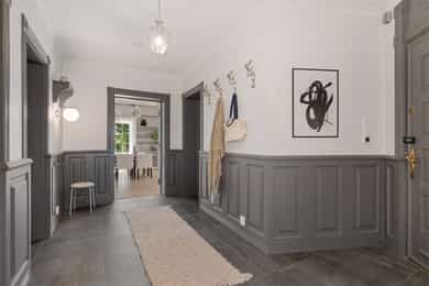 Klassisk og påkostet leilighet i den herskapelige villaen Sirilund, oppført i 1920. Sirilund var en av de første eiendommene på Holmen, og navnet stammer fra Hamsuns litterære verk Pan. Bygget har en attraktiv beliggenhet og ligger omkranset av en nydelig villahage. Høydepunkter: - To ildsteder - Tre soverom på samme plan - Godt med lagringsplass i flere boder - God takhøyde på ca. 3,2 meter i stue - Hovedetasjen ble totaloppusset i 2018 - To biloppstillingsplasser, en med elbillader - Boligen ligger tilbaketrukket i andre rekke fra veien - Boligen har tre bad og vaskerom, to av badene er pusset opp i 2018 - Privat hage på ca. 1,7 mål i tillegg til fellesområder som deles med sameiet - Eksklusivt kjøkken fra Lidhults med benkeplate i marmor og hvitevarer fra Gaggenau