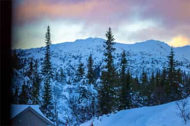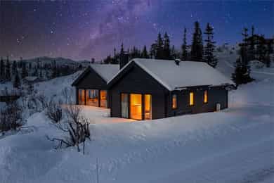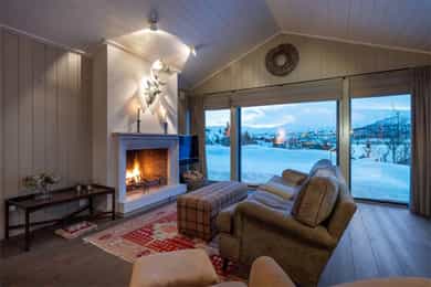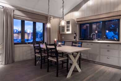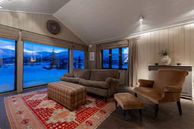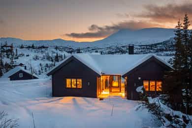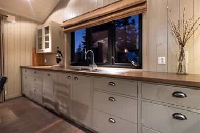 • Store vindusflater som gir rikelig med lys inn i hytta