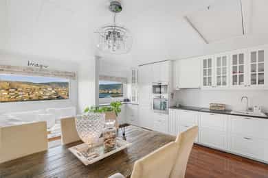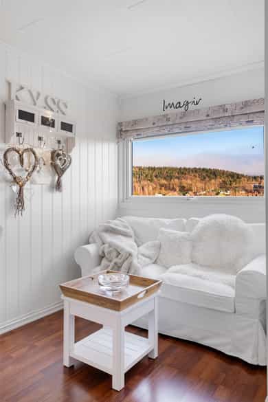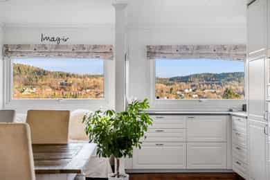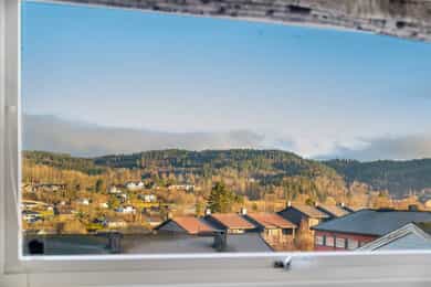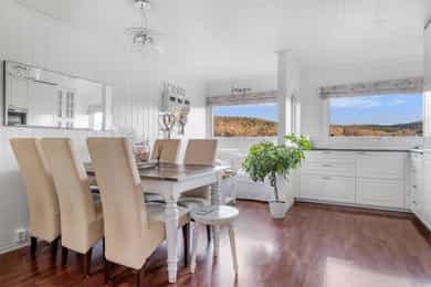 Lys og tiltalende enderekkehus med solrik beliggenhet og flott utsikt. Boligen går over to plan samt loft og har en innholdsrik, arealeffektiv og gjennomtenkt planløsning. Meget pent oppusset med moderne løsninger, god standard og stilrene detaljer – her kan man flytte rett inn. Flott intern beliggenhet øverst på feltet, usjenert og på enden, med utsikt over Lommedalen og Bærums Verk. Barnevennlig område med marka, slalåmbakke og lekeplass i nærheten, samt kort gangavstand til barnehager, skoler, butikker og buss. Fremstående kvaliteter: - Enderekkehus med flott utsikt - Solrik, vestvendt terrasse - Barnevennlig og attraktiv beliggenhet - Nærhet til "alt" - Utebod Dette er en svært god mulighet til å sikre seg et innholdsrikt og trivelig rekkehus i et etterspurt område.