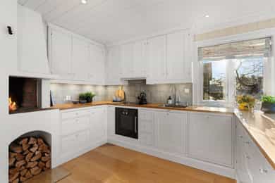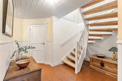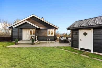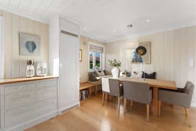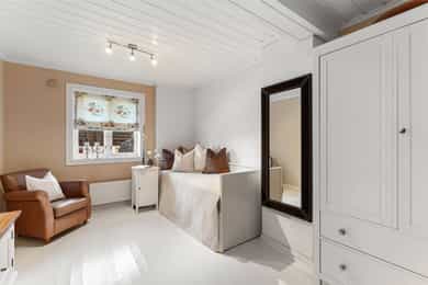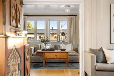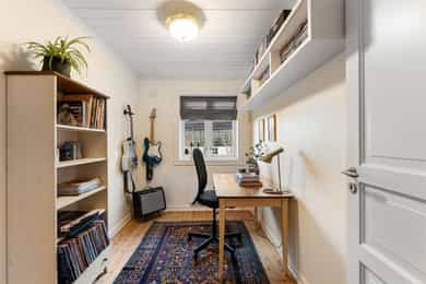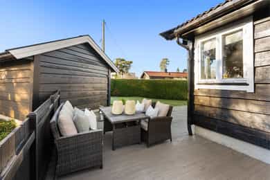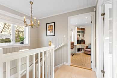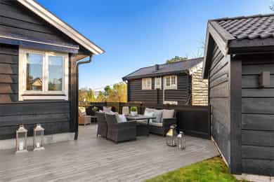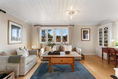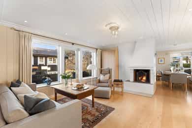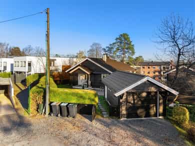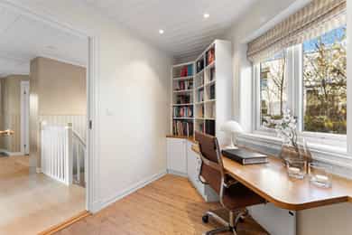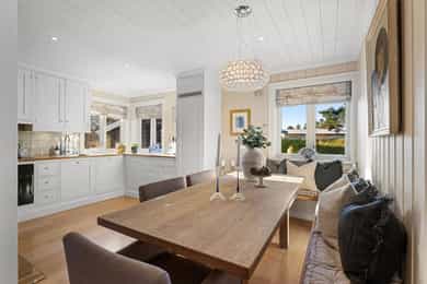 Tiltalende, velholdt enebolig. Flere fjordgløtt. Innerst i blindvei. Rolig, barnevennlig beliggenhet. Nær Snarøya skole.