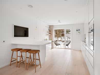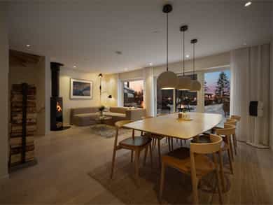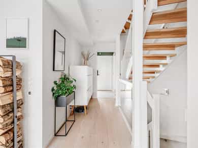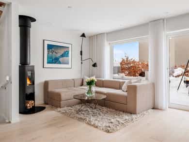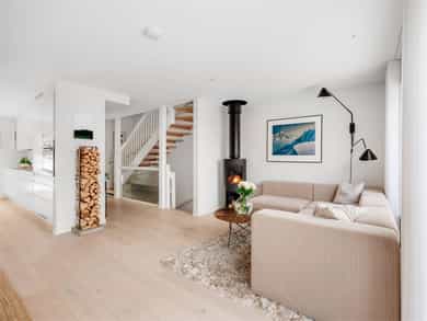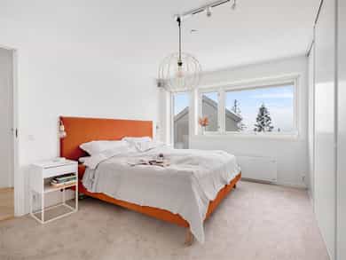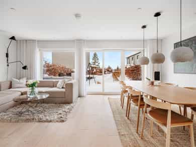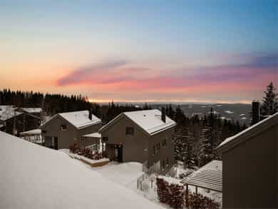 Moderne rekkehus fra 2017 med god standard, solrike uteområder og to garasjeplasser med direkte adkomst. Nydelig utsikt, sen kveldssol og spektakulære solnedganger. Oppgradert fra standardleveranse med flere gode interiørgrep og smarte oppbevaringsløsninger. Helt inntil markagrensen med direkte adkomst til milevis av tur- og skimuligheter.