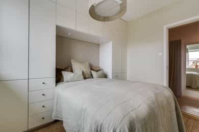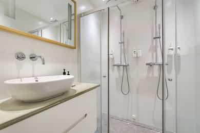 Gjennomgående 3- roms toppleilighet Svært lys med vindusflater i to himmelretninger Solrik vestvendt balkong med sjøgløtt Vesentlig oppusset og påkostet i 2014. iht. tidligere annonse Delikat flislagt bad med dobbel dusj Varmtvann, kabel-TV og bredbånd inkl Stilrent kjøkken fra Epoq i åpen løsning Svært god planløsning med store, gode rom Nydelige klassiske detaljer som teglvegg og generøs takhøyde Enstavs parkett og eikefliser fra Kährs Spesialtilpassede garderobeløsninger To romslige loftsboder kun en etasje opp Idyllisk bakgård med store grøntarealer og grill Veldrevet sameie Stille og tilbaketrukket, samtidig med "alt" like utenfor døren Beliggende i blindvei med lite trafikk Vakkert nabolag med grønne lunger, samt fine tur og treningsmuligheter