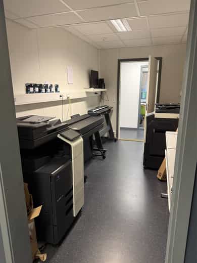 Næringseiendom benyttet som kombinert kontor/lagerlokale på 1049m2. Sentral beliggenhet i Flekkefjord og god parkering