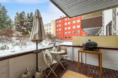 Flott 3-roms m/sydvestvendt terrasse på 10 kvm | Vinduer 2025 | Fyring inkl. | Tilbaketrukket og attraktiv beliggenhet