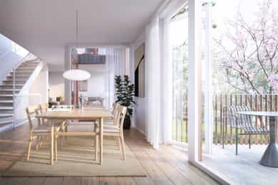 Arkitekttegnet enderekkehus i ettertraktet boligområde | R21 Arkitekter | 3 sov | 2 bad | Garasjeplass | 2 uteplasser