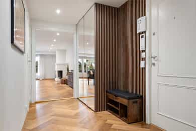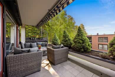 Stor og påkostet endeleilighet på 133 kvm med to usjenerte uteplasser. Leiligheten ble omfattende oppgradert i 2023 og fremstår gjennomført med gode materialvalg og moderne løsninger. Gjennomgående planløsning med store rom og fin romfølelse. Trappefri adkomst og heis direkte til garasjeplass.