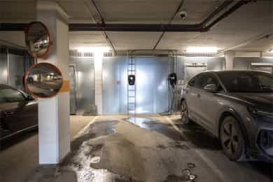 Det medfølger én garasjeplass (merket med B4) i felles garasjeanlegg med elbil-lader. Garasjeanlegget er organisert som et eget sameie, Holtekilen Front Garasjesameie. Parkeringsplassen følger seksjonen ved salg. Se garasjesameiets vedtekter vedlagt. Strøm til el-lader faktureres etterskuddsvis èn gang i året.