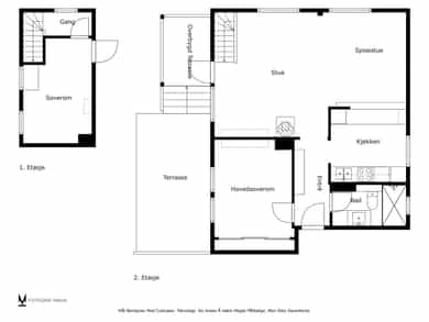 Romslig leilighet beliggende i første etasje av en firemannsbolig. Planløsningen er arealeffektiv og byr på funksjonelle rom. Boligen var opprinnelig en 4-roms, men er i dag omgjort til en 2-roms – med gode muligheter for å tilbakeføre til opprinnelig rominndeling. I tillegg er kjelleretasjen innredet med et ekstra rom som benyttes som soverom/stue (ikke godkjent for varig opphold). Interne rom: 1. etasje: Entré med garderobe Helfliset baderom med toalett, dusj og servant Stort soverom med skyvedørsgarderobe (tidligere to separate soverom) Lys og trivelig stue med åpen kjøkkenløsning, vedovn og utgang til terrasse Underetasje: Innredet stue/soverom (ikke godkjent for varig opphold). Eksterne rom: Leiligheten disponerer 2 boder i kjeller på tilsammen ca, 13m². Ikke måleverdig bod på loft ble målt til ca. 13m². Det er også et disponibelt areal på utsiden av bod på ca. 9m²samt et areal med lav himlingshøyde på ca. 14m². Uteplasser: Fra stuen er det utgang til en syd- og vestvendt terrasse på ca. 23 m², med svært gode solforhold og plass til hyggelige utemøbler. Trapp fører direkte ned til en stor hage som byr på rikelig med boltreplass for både små og store. Terrassedekket er bygget med impregnert materiale. Planskisser: Vedlagt følger planskisser som viser boligens etasjeplan. Vi gjør oppmerksom på at disse kun er av illustrativ karakter og ikke er i målestokk. Det kan forekomme avvik fra dagens løsning og innredning.