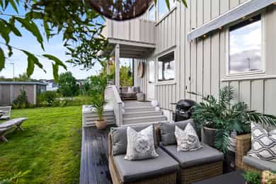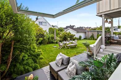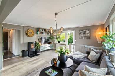 Flott leilighet m/mulighet for 3 soverom og innredet underetasje | vestvendt og solrik terrasse og hage