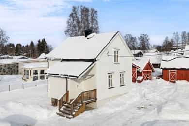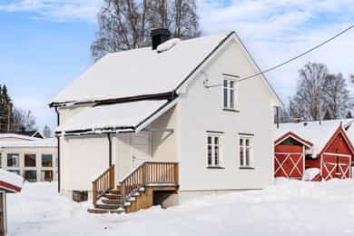 Renovert og sjarmerende enebolig sentralt på Bøverbru med solrik tomt, uthus og garasjer.