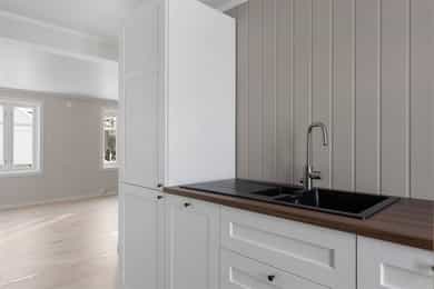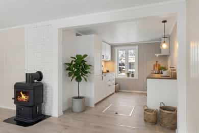 Nordvik Eiendomsmegling presenterer Bøverbrugata 33 - En svært påkostet og sjarmerende enebolig med planløsning over to etasjer. Boligen har blant annet nytt kjøkken (2025), fornyet bad (2025) og nye overflater i perioden 2023 - 2025 . Det er også ny taktekking (2020), samt etterisolert, byttet kledning og vinduer i 2023. El-anlegg ferdigstilt 2026. Her kan man trygt flytte rett inn i en lettstelt og påkostet enebolig. Planløsning med vindfang, stue/spisestue, kjøkken og et stort bad/vaskerom på hovedplan. I andre etasje har man to gode soverom med tilgang på hver sin walk-in garderobe. På tomten er det også et stort uthus, innredet del med terrasse, to enkle eldre garasjer og en frittstående bod. Velkommen til visning!