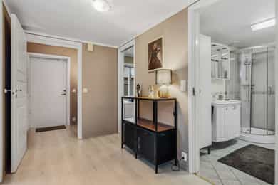 • Leiligheten ligger sentralt, men skjermet til i et etablert og rolig boligområde. Her bor du med kort vei til både byliv og natur - med kafeer, restauranter, kino, bibliotek, vinbar og Verket Scene i nabolaget, samt kort gangavstand til togstasjon med gode forbindelser mot både Oslo og Halden.