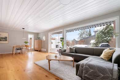 Meget attraktiv halvpart av en vertikaldelt 2-mannsbolig. Dette er en perfekt familiebolig i et veletablert boligområde på Ulsrud. Her bor man i rolige omgivelser, men samtidig sentral beliggenhet med kun et par minutters gange til off. komm., dagligvarebutikk og skole. Boligen sogner til Bøler skolekrets og det er flere barnehager i nærområdet. Vakre Østmarka ligger innen gangavstand og legger til rette for flotte naturopplevelser. Selve huset er delt opp i 4 delplan som gjør at huset oppleves større enn de meterne det har fått utdelt. - Meget god planløsning, fordelt over 4 delplan - Stor, inngjerdet hage - Meget solrik tomt i et rolig nabolag - Drenerte nordveggen 2025 - 3 soverom, 2 bad - 200 meter til T-bane/buss - Kort vei til skole og barnehager - Nærhet til marka