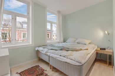 Kenny Nguyen v/ Nordvik Grünerløkka har gleden av å ønske velkommen til Skjelderups gate 16 - En lys og svært tiltalende 2-roms med solrik og vestvendt balkong på 5 m². Store vindusflater gir gode lysforhold og en luftig romfølelse. Leiligheten har en romslig stue med peis og gode møbleringsmuligheter, samt separat kjøkken med integrerte hvitevarer og ekstra hygge med vedfyring. Flislagt bad med varmekabler og opplegg for vaskemaskin. Soverommet har plass til dobbeltseng og garderobeløsning og garderoberom/walk-in med god plass til oppbevaring Høydepunkter: -Solrik og vestvendt balkong på 5 m² -Varmtvann fra sentralanlegg og fibernett i bygget -Kjøkken med integrerte hvitevarer -Vedfyring på kjøkken og i stue -Kjeller -og loftsbod -Felles takterrasse -Ingen dokumentavgift