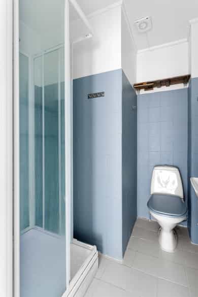 TG2 Vinduer Vinduer er av eldre dato og har oppnådd minste forventede brukstid. Det er fare for punktering av isolerglass som følge av alder, og påregnelig med utskiftninger på sikt. Det er vanskelig å angi når strakstiltak vil bli nødvendig, men vinduene har nådd minste forventede brukstid. Normal tid før utskifting av trevinduer er 20–60 år, avhengig av kvalitet, vedlikehold og eksponeringsforhold. Konsekvens/tiltak: Overvåk tilstanden jevnlig. For å få tilstandsgrad 0 eller 1 må vinduer skiftes ut, men tidspunktet for når dette er nødvendig er vanskelig å si noe om. Dører Entredør er ikke brann eller lydklassifisert. Eldre balkongdører har dårligere isolasjonsevne og må påregnes utskiftet på sikt. Konsekvens/tiltak: Overvåk tilstanden jevnlig. For å få tilstandsgrad 0 eller 1 må balkongdør skiftes ut, men tidspunktet for når dette er nødvendig er vanskelig å si noe om. Entrédøren bør vurderes skiftet til dør med minimum brannklassifisering. Balkonger, terrasser og rom under balkonger Rekkverket er for lavt i forhold til dagens krav til rekkverkshøyder. Treflisene på gulvet er delvis ødelagte og har høy slitasje. Konsekvens/tiltak: Det er ikke krav om utbedring av rekkverkshøyde opp til dagens forskriftskrav. Trefliser på balkonggulvet bør skiftes. Overflater Overflater har en del slitasjegrad utover det en kan forvente. Overflater har høy slitasjegrad. Gulv har flere hakk/merker. Vegger er ikke ferdig malt. Konsekvens/tiltak: Det bør påregnes oppussing av overflater i hele boligen. Etasjeskille/gulv mot grunn Det er målt høydeforskjell på mellom 15-30 mm gjennom hele rommet. Tilstandsgrad 2 gis med bakgrunn i standardens krav til godkjente måleavvik. Avviket ble målt i stuen. Det er påregnelig med stedvis retningsavvik i eldre etasjeskillere av trebjelkelag. Det anmerkes at det ikke er gjort inngripen i konstruksjonen. Konsekvens/tiltak: For å få tilstandsgrad 0 eller 1 må høydeforskjeller rettes opp. Det vil imidlertid sjelden være økonomisk rasjonelt som et enkeltstående tiltak i en bolig som dette. Dersom boligen en gang skal renoveres, kan man vurdere slike tiltak. Det anses ikke være noen umiddelbare tiltak nødvendig, det vil være naturlig å gjøre opprettende tiltak ved oppussing av overflater. Innvendige dører Det er påvist avvik som tilsier at det bør foretas tiltak på enkelte dører. Enkelte av innvendige dører har en del slitasje. Innerdør til soverom lar seg ikke lukke. Dørene har i tillegg høy slitasjegrad. Konsekvens/tiltak: Lokal utbedring må påregnes. Det bør påregnes utskiftning av dører. 4. etasje - kjøkken - Overflater og innredning Det er påvist skader på overflater/kjøkkeninnredning utover normal slitasjegrad. Konsekvens/tiltak: Det må påregnes lokal utbedring/utskiftning. 4. etasje - kjøkken - Avtrekk Det er kun kullfilterventilator på kjøkkenet og heller ikke andre forserte/mekaniske avtrekksløsninger fra kokesonen. NS3600 krever mekanisk for å kunne gi tg 0/1. Kjøkkenventilator med kullfilter er vanlig i blokkleiligheter, og det er normalt ikke tillat med forsert avtrekk til felles kanaler for bygget. Konsekvens/tiltak: Det er ikke alltid det er godkjent av borettslagene å koble forsert/mekanisk avtrekk til felles kanaler eller ut av bygningen. Det vil i de tilfeller ikke være mulig å oppnå bedre tilstandsgrad. Vannledninger Mer enn halvparten av forventet brukstid er passert på innvendige vannledninger. Kobberør på bad bør forankres. Ved uhell kan denne fort sprekke. Konsekvens/tiltak: I forbindelse med oppgradering av våtrom vil det være naturlig med utskiftning av rør. Avløpsrør Mer enn halvparten av forventet brukstid er passert på innvendige avløpsledninger. Konsekvens/tiltak: I forbindelse med oppgradering av våtrom vil det være naturlig med utskiftning av rør. Ventilasjon Det er påvist mangelfull ventilasjon på ett eller flere rom i boligen. Boligen har kun en lufteluke, denne er på soverommet. Konsekvens/tiltak: Det bør etableres veggventiler/vindusventiler i alle oppholdsrom som ikke har det. Varmtvannstank Det er påvist avvik ifm understøttelsen av tanken. Det er ikke påvist tilfredsstillende avrenning eller annen kompenserende løsning fra varmtvannstank. Det er ikke påvist tilfredsstillende el-tilkobling av varmtvannstank iht. gjeldende forskrift. Det er påvist at varmtvannstank er over 20 år. Bunnplaten i kjøkkeninnredningen har betydelige skjevheter. Konsekvens/tiltak: Det bør etableres tilfredsstillende el-tilkobling etter gjeldende forskrift. Det bør etableres tilfredsstillende avrenning eller lekkasjesikring ved varmtvannstank. Det må gjøres tiltak på understøttelsen av tanken. Varmtvannstanken bør skiftes ut, samt etablere fast tilkobling. Det må fundamenteres under berederen. Elektrisk anlegg Det bør foretas kontroll/tilsyn av det elektriske anlegget da det ikke foreligger samsvarserklæringer eller annen dokumentasjon på anlegget. Generell kommentar: Det ligger løse kabler i leiligheten. Disse er trolig telekabler. Det mangler kuppel til lampe i entréen. TG3 4. etasje - bad - Generell Himling med malte plater. Vegger med malte plater og fliser. Gulv med fliser. Innredet med toalett, servant nedfelt i innredning og dusjkabinett. Naturlig ventilasjon. Elektrisk oppvarming. Våtrommet må oppgraderes for å tåle normal bruk etter dagens krav. Ukjent om det er membran på badet. Sluk er ikke besiktiget grunnet manglende adkomst pga dusjkabinett. Konsekvens/tiltak: Våtrommet må totalrenoveres. Alle forhold med tettesjikt, våtsone, sluk m.m. må dokumenteres. Manglende oppgradering av våtrommet medfører høy risiko for at konstruksjonene ikke vil tåle vanlig bruk av vann eller lekkasjer. Selv om det er dusjkabinett, er det fortsatt en betydelig risiko for at våtrommets konstruksjoner ikke tåler lekkasjer. Dette kan føre til fuktskader på tilstøtende konstruksjoner.