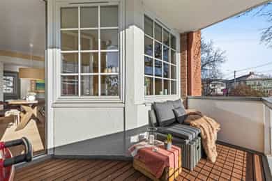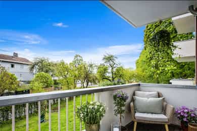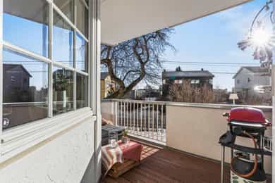 Lys og pen 4-roms med balkong. Vinduer i 3 retninger. HTH kjøkken. Forbedret planløsning. Skjermet og idyllisk