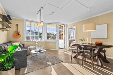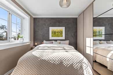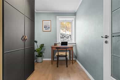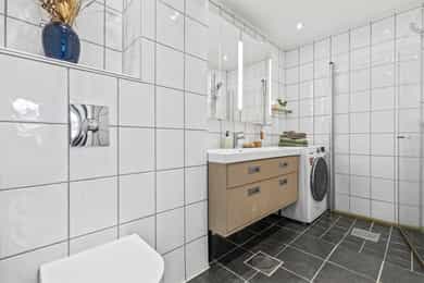 Velkommen inn! Boligen har en åpen og romslig entré med god plass til garderobeskap og skoskap. Her får du et lyst og innbydende førsteinntrykk, med en planløsning som oppleves både praktisk og oversiktlig. Stue | Kjøkken Boligen byr på et stort og sosialt oppholdsrom med gode muligheter for å etablere ulike soner. Det er rikelig med plass til både sofagruppe og spisegruppe. Store vindusflater fra flere himmelretninger gir rommet et flott lysinnslipp og lar oppholdsrommet bade i naturlig dagslys. Kjøkkenet ligger delvis skjermet i egen nisje og er levert av HTH (2018). Innredningen fremstår tidløs og funksjonell, og er utstyrt med integrerte hvitevarer som induksjonstopp, stekeovn, oppvaskmaskin samt kjøle- og fryseskap. Det er installert komfyrvakt og waterguard/aquastop for økt trygghet. Fra stuen er det utgang til en hyggelig, sørvendt balkong på ca. 6 kvm med gode solforhold store deler av dagen (sommerstid til ca. kl. 16–17). Her er det god plass til utemøbler og grill. Balkongen vender mot felles hage og har et åpent og luftig utsyn uten sjenerende innsyn. Borettslaget har en koselig og velholdt hage med bord, benker, lekeplass, epletre og egen parsell for urte- og grønnsaksdyrking. Her bor man godt tilbaketrukket fra vei, og uten sjenerende innsyn. Og den lave bebyggelsen over veien gir et veldig åpent og luftig utsyn. Soverom Boligen har totalt tre soverom. Hovedsoverommet er romslig, med god plass til dobbeltseng, nattbord og garderobeskap. Soverom II og III har også fine størrelser og egner seg godt som gjesterom, barnerom eller kontor - alt etter ønske og behov. Bad Lyst og flislagt baderom med gulvvarme. Badet ble modernisert i 2009. Badet ble modernisert i 2009, og arbeidene omfattet utskifting av sluk, etablering av hjelpesluk, ny foliemembran samt påstøp med varmekabler. Det ble lagt nye vannrør og montert nytt sanitærutstyr - i praksis ble badet bygget opp på nytt. Innredningen består av heldekkende servant med underskap, speilskap, veggmontert WC og dusjsone med to svingbare glassvegger. Det er opplegg for vaskemaskin. Deler av baderomsinnredningen var ny i 2019. Badet har naturlig ventilasjon via veggventil og tilluftsspalte under dør. I 2024 ble vertikale avløpsrør rehabilitert med strømpeforing i regi av borettslaget. Bod Boligen disponerer hele tre boder, på tilsammen 16 kvm. Dette gir svært gode oppbevaringsmuligheter og fleksibilitet i hverdagen. Her er det rikelig med plass til sesongutstyr, sykler, sportsutstyr, barnevogn, verktøy og annet som ikke trenger å oppta plass i selve leiligheten.