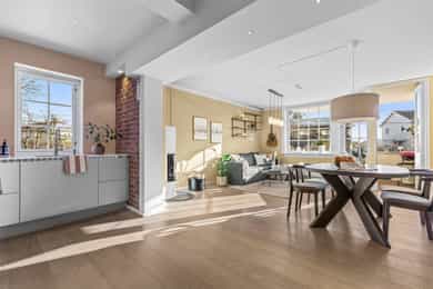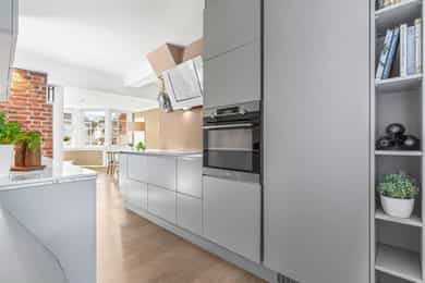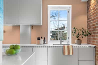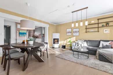 - I 2018 ble det montert ny kjøkkeninnredning med integrerte hvitevarer og det ble samtidig åpnet opp mellom stue og kjøkken.