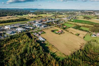 omkringliggende bebyggelse er boligbebyggelse, landbruk og næringseiendom.