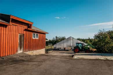 På tomten står også en eldre driftsbygning. Den er slitt, men byr på store muligheter for den som ønsker å sette sitt preg – enten du drømmer om stall, verksted, lager eller et sted for dyrehold.