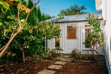 På eiendommen finnes et ca 370kvm stort veksthus, samt et ca 80kvm stort uthus. Sistnevnte besitter et vesentlig