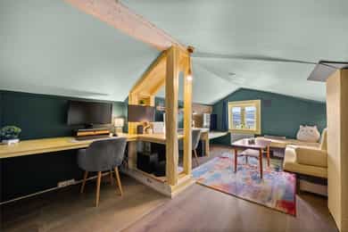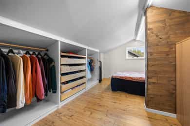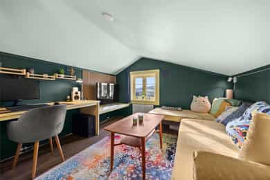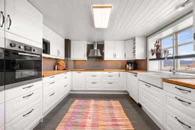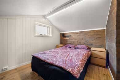 1. Etasje: Entré/gang: Praktisk entré med garderobeskap som gir god plass for oppbevaring av sko og yttertøy. Videre adkomst til romslig gang med ytterligere oppbevaringsplass. Stue: Stor og lys stue med flere gode møbleringsmuligheter. Stuen gir enkelt plass for å innrede til både tv-stue med sofagruppe og spisestue. Stuen har flere vindusflater som bidrar til godt med naturlig lys i oppholdsrommet, samt landlige utsikt. Det er både peisovn og varmepumpe i stuen som bidrar til en lun atmosfære, og kommer godt med på kaldere dager. Adkomst til terrasse og hage fra stuen. Kjøkken: Romslig kjøkken med profilerte fronter og benkeplate i heltre. Kjøkkenet er utstyrt med integrert micro, to stekeovner, platetopp fra 2023, kjøl/fryseskap og oppvaskmaskin. I tillegg er det godt med oppbevaringsplass i en god miks av skuffer og skap. Soverom: I hovedetasjen finner du to gode soverom. Hovedsoverommet gir enkelt plass for dobbeltseng med tilhørende nattbord. I tillegg er det god plass for skap eller kommode til oppbevaring. Soverom 2 er også lyst og pent og passer perfekt som barnerom eller gjesterom. Bad: Romslig bad med flislagt gulv. Badet er utstyrt med servant med underskap, speil, dusjkabinett og toalett. I tillegg er det opplegg for vaskemaskin på badet. Badet er eldre og må oppgraderes for å tåle normal bruk etter dagens krav. Loft: Loftstue: Meget praktisk loftstue som praktisk kan benyttes som en ekstra tv-stue og hjemmekontorløsning. Stuen har plassbygd sofa og skrivebord som medfølger salget. Loftstuen er i tillegg oppgradert med nytt gulv og malte overflater. Rom innredet som soverom: Romslig rom innredet som soverom. Det opplyses om at vindu ikke tilfredsstiller krav til lys og rømning. Videre er det plassbygd garderobeskap som gir god plass til oppbevaring.