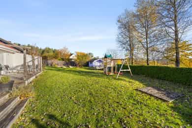 Eiendommen er beliggende på flott opparbeidet tomt på hele 825 m2.