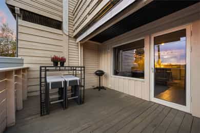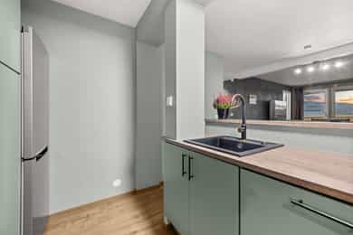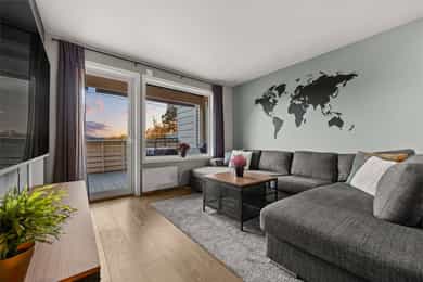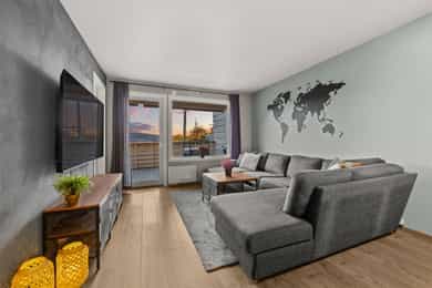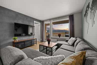 Lys og fin 2-roms eierleilighet med solrik terrasse og flott utsikt - Overflater bad/kjøkken fra 2018 - Garasje