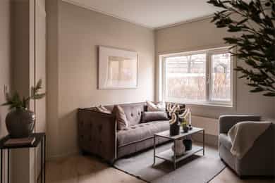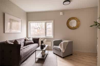 I samarbeid med Storebrand og HELP tilbyr Nordvik Boligkjøperpakke til våre boligkjøpere. Boligkjøperpakken er et gunstig forsikringskonsept som inneholder alle de forsikringene du trenger til den nye boligen din. Boligkjøperpakke Leilighet inneholder: Boligkjøperforsikring fra HELP, flytteforsikring og innboforsikring Super. Boligkjøperforsikring er en rettshjelpsforsikring som gir trygghet og profesjonell juridisk hjelp dersom det oppdages uventede feil eller mangler ved boligen. Forsikringen gjelder i 5 år fra overtakelsen. Flytteforsikring dekker skade på eiendeler under flytting ved plutselig og uforutsett hendelse som oppstår under transport eller i forbindelse med bæring mellom bolig, bil eller lagringssted. Forsikringen varer i 1 år fra budaksept. Innboforsikring Super dekker tingene dine ved blant annet tyveri, brann eller vannskader. Vår beste innboforsikring Super inkluderer blant annet uflaksforsikring, bistand ved ID-tyveri og psykologhjelp ved alvorlige hendelser hjemme. Forsikringen gjelder i 3 måneder fra overtakelsesdatoen av ny bolig. Velger du Boligkjøperpakke Leilighet+ får du i tillegg renteforsikring: Renteforsikringen kan hjelpe deg med rentekostnaden og forsikringspremien på din primærbolig som skal selges, hvis salgsprosessen fører til at du må betale rentekostnader på to lån. Forsikringen gjelder i 9 måneder (3 måneder karenstid) og dekker inntil 15 000 kroner i måneden. Boligkjøperforsikring fra HELP kan også kjøpes separat og inkluderer da flytteforsikring fra Storebrand. Boligkjøperpakke/Boligkjøperforsikring må tegnes senest ved kontraktsignering og gjelder fra overtakelsen. Kjøper blir kontaktet av Storebrand med et tilbud på videre forsikring av innbo. Se pris og mer informasjon om forsikringene i produktarket vedlagt salgsoppgaven, eller ta kontakt med megler.