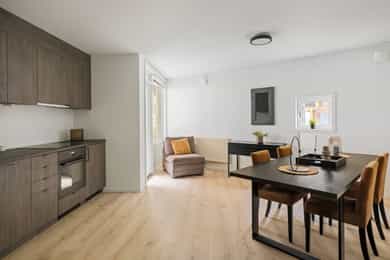 Hele 1. etasjen ble utsatt for en vannlekkasje i 2025. Alt ble revet inntil stenderverket og bygd opp igjen identisk av slik det var før skaden. Badene er nye med ny membran. Slukene ble ikke skiftet ut Prosjektet ble ledet med prosjektstyring fra forsikringsselskapet, samt godkjente aktører på de ulike fagfeltene. Annet: Strømkostnad er felles per etg. Per dags dato utgjør kostnad for strøm kr. 384,- per mnd. stipulert (a-konto) per leilighet. Det er ikke mulig å øke antall kurser. Àkonto strøm er inkludert i felleskostnadene. Styret jobber i disse dager med en gjennomgang av økonomien og generelle prisøkninger i samfunnet. Det kan forekomme en økning av felleskostnadene etter gjennomgangen. Modulkjøkken i de ulike leilighetene er installert for enkel bruk. Fullverdig kjøkken i allrom. Borettslagsmodellen innebærer at borettslaget eier eiendommen, mens andelseierne eier andeler i borettslaget, som gir borett til en bestemt bolig. Andelseierne har ikke personlig ansvar for borettslagets fellesgjeld, men andelseierne må dekke borettslagets løpende utgifter. Manglende innbetaling av fellesutgiftene som følge av andre andelshaveres mislighold, eller der borettslaget sitter på fraflyttede og/eller usolgte andeler, må dekkes av de øvrige andelseierne. Borettslaget har legalpanterett i andelen for krav på dekning av felleskostnader og andre krav fra borettslaget på inntil 2 ganger folketrygdens grunnbeløp. Kjøper og selger er forpliktet til å undertegne standard kjøpekontrakt utarbeidet av Nordvik i forbindelse med eiendomstransaksjonen. Kjøpekontrakt kan besiktiges hos eiendomsmegler før bud inngis. Kontakt eiendomsmegler for spørsmål. Leiligheten vil ikke bli ytterligere vasket til overtagelse.