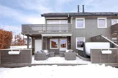 1/2-part av vertikaldelt tomannsbolig m/solrike uteplasser, hage og garasje - 4 sov og 2 stuer - Rolig og barnevennlig!