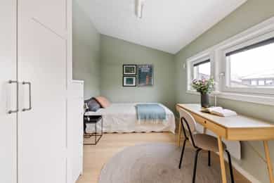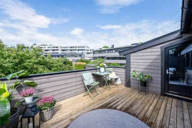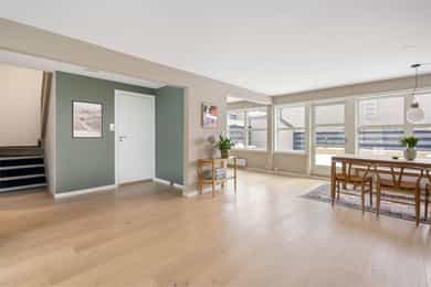 Velkommen til et påkostet og innholdsrikt enderekkehus med en meget attraktiv beliggenhet på barnevennlig tun. Her bor man stille og rolig til med kort og bilfri skolevei. Boligen går over to plan med en god og familievennlig planløsning. Store og solrike utplasser med samlet areal på nesten 60 kvm! - Innholdsrik og familievennlig planløsning - 135 kvm gulvareal - Store og solrike uteplasser - Bad og vaskerom - Peis i stue - Ekstra isolering - Garasjeplass med lader - Bilfritt og barnevennlig tun med lekeplasser - God intern beliggenhet - Ingen dok.avgift Eiendommen sogner til Kastellet skole som ligger få minutters gange på interne gangveier fra eiendommen. Videre har boligen kort vei til trikk, buss, nærbutikk og Lambertseter Senter som har alt av nødvendige butikker og servicetilbud.